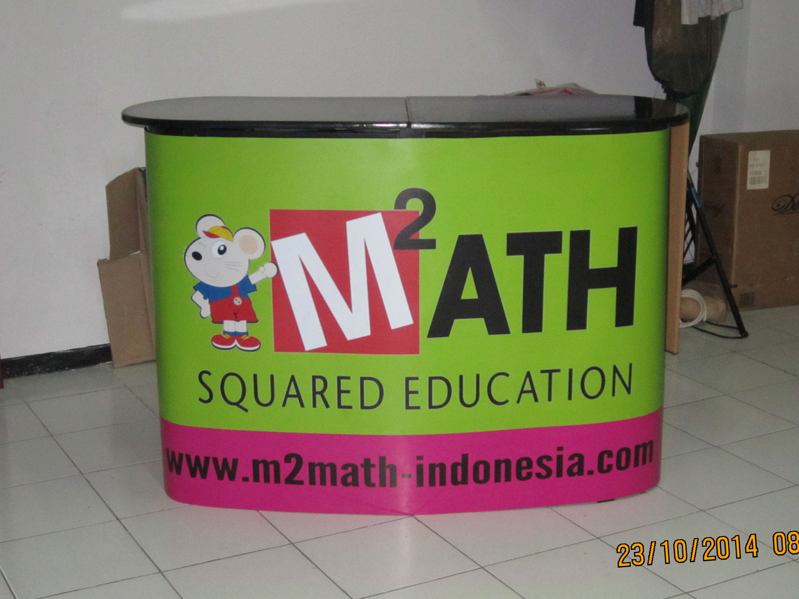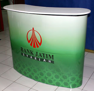 Kuat, mudah di bongkar pasang, elegant. Portable desk / Pop Up Table ini sangat cocok untuk acara / event pameran karena mudah disiapkan. Dengan penampilan yang elegant akan sangat cocok untuk membantu dalam pameran produk property, perbankan, asuransi, produk premium lainnya. Dengan media dari bahan digital printing sticker dan laminasi, media bisa diganti sesuai event yang akan berlangsung.